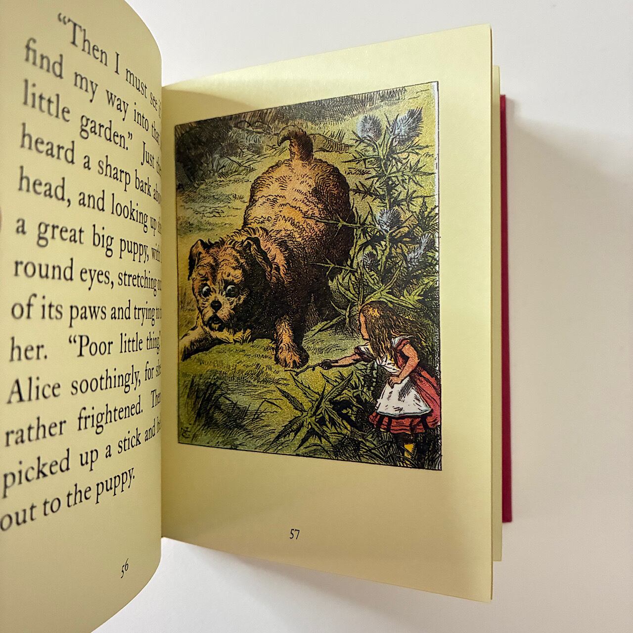 サー・ジョン・テニエルのオリジナルイラストが60点以上含まれており、フルカラーで再現されています。特筆すべきは、アリスが赤いドレスで描かれている点です。これは1903年の「Little Folks’ Edition」特有の特徴で、現代のイメージである青いドレスのアリスとは異なります。この赤いドレスのアリスは、1907年版の「Alice’s Adventures in Wonderland: The Little Folks’ Edition」に初めて登場しました。