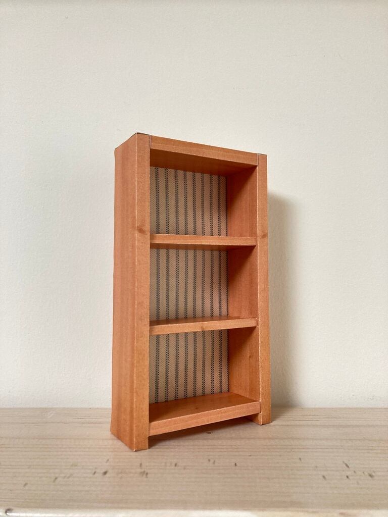 リアルだけど、ミニチュア感もある、かわいい本棚のペーパークラフトキットです。
