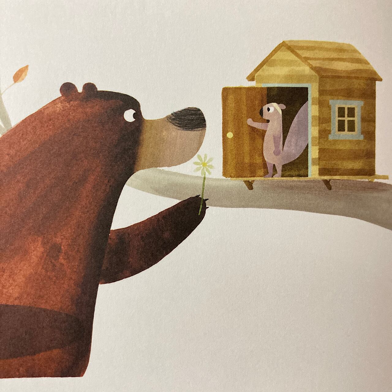 リスがどこへ行っても、クマはついていきます。クマは、リスが不機嫌でも、おどけても、怒っていても、ずっとそばにいると誓います。