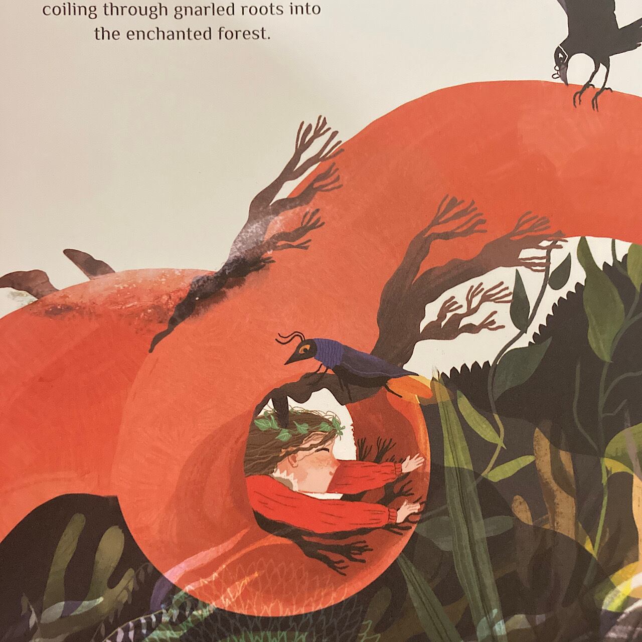 そのバラ色の体は、節くれだった根を伝って魔法の森へと続いていました……。