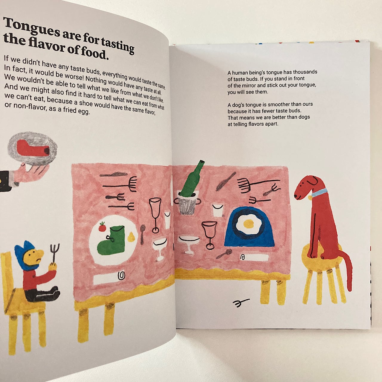 アンドレア・アンティノリが描く絵本は、可愛いイラストが描かれ、たくさんの豆知識が盛り込まれています。こちらの絵本のテーマは「味覚」
