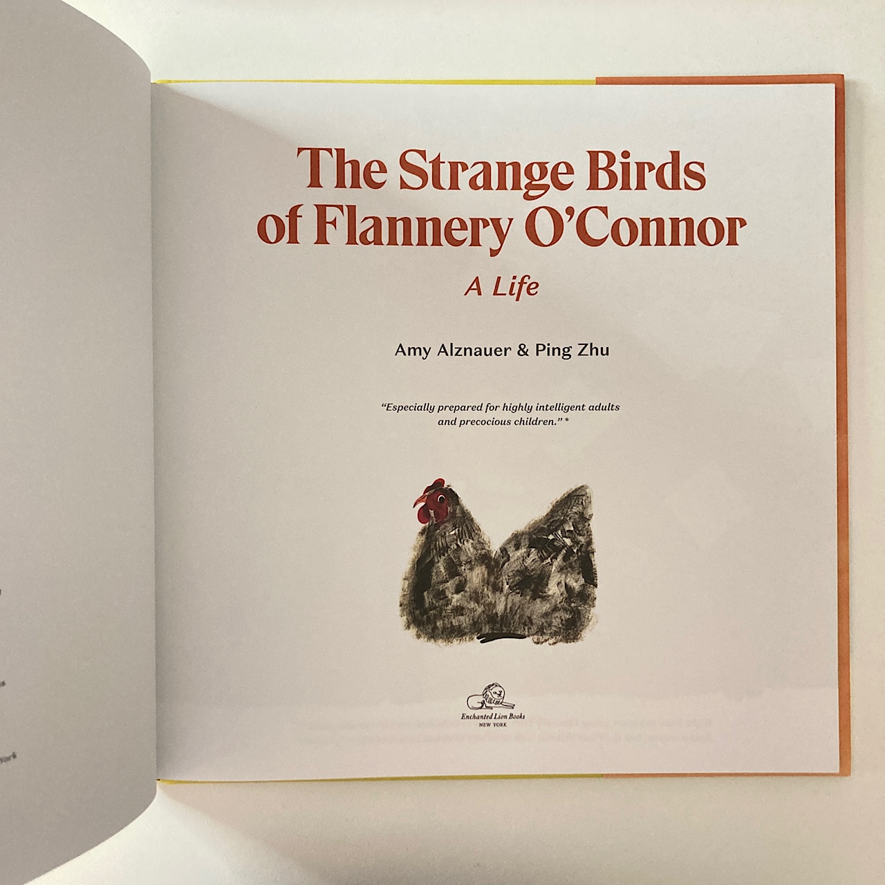 この絵本は、フラナリー・オコナーの子供時代の「The Starange Birds」への執着を、魅力的に語ります。
