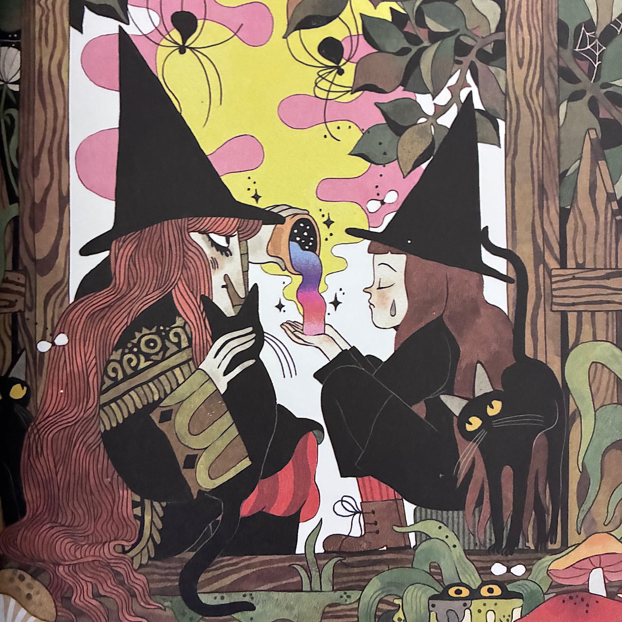 カルメラは魔女と一緒に「トードのエッセンスとハチミツのお風呂」や「スワンの骨」で心の傷を癒す儀式を行い、薬を調合します。