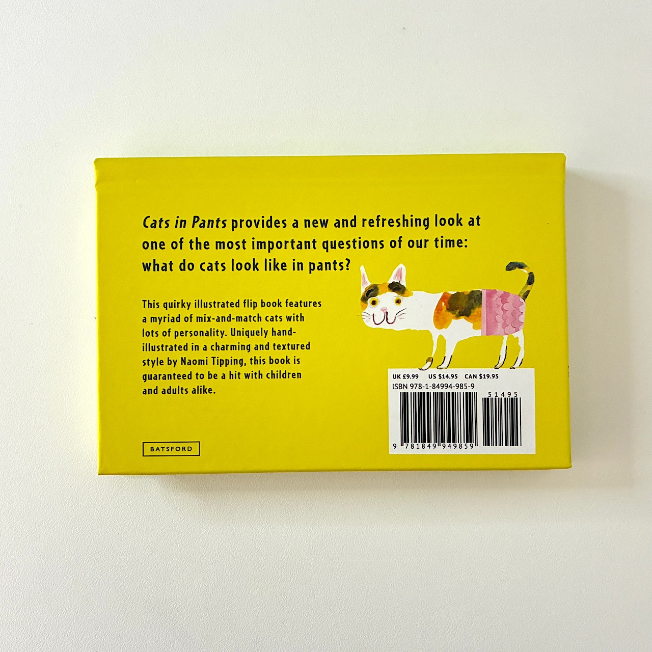 A quirky illustrated flip book featuring a myriad of mix-and-match cats. Cats in Pants is a hilarious swing through the underwear preferences of several cats with lots of personality. Uniquely hand-illustrated in a charming and textured style by Naomi Tipping, this book is guaranteed to be a hit with children and adults alike. Each page is equally divided into three parts so that the head, body and (clothed) tail-end of the cat can be swapped around with the respective parts from other pages to create a huge number of cats.