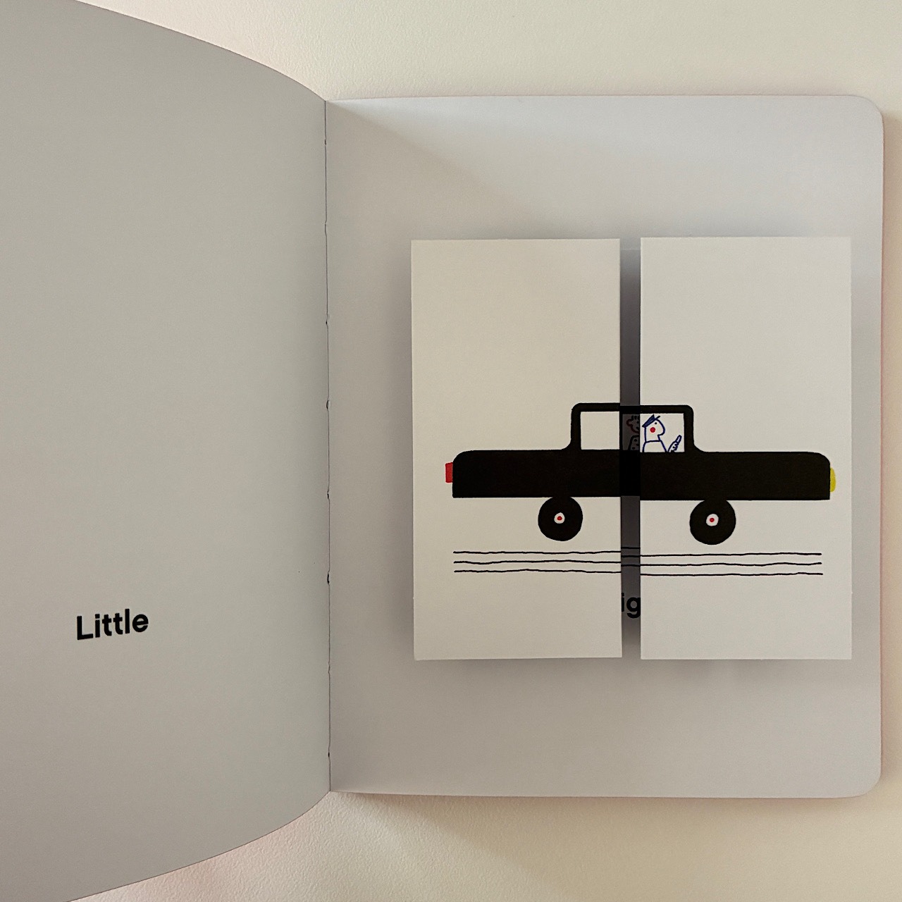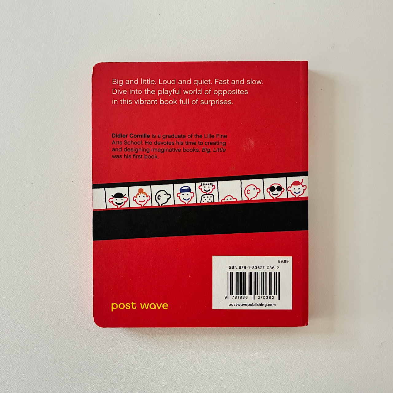 A small click, a big bang. A sleek limo, a compact car. Contrasts at every turn! This tiny, vibrant red book, with its minimalist design, surprises at every page with a playful mix of opposites.
