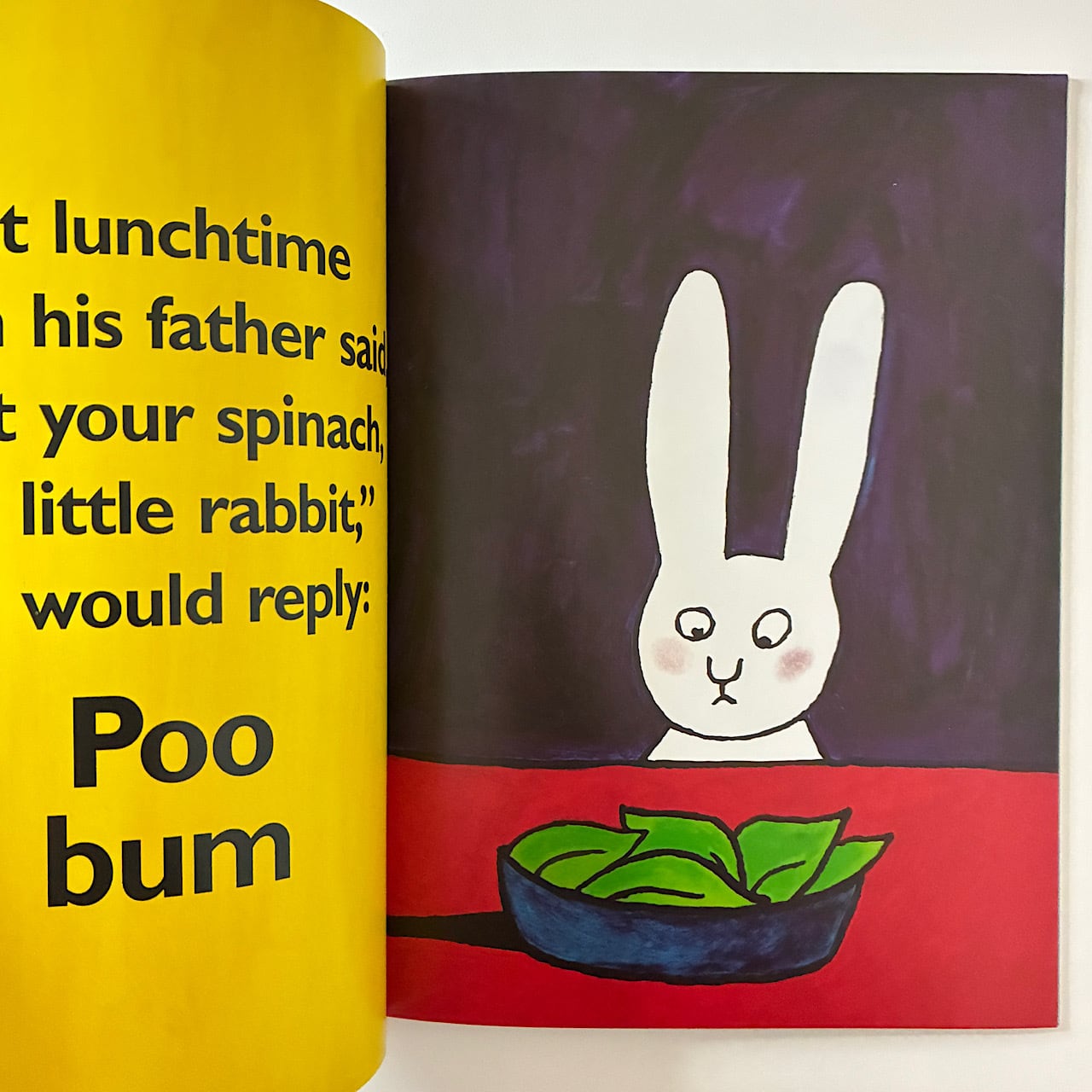 Simon is children's favourite cheeky rabbit!Once there was a little rabbit who could only say one thing... In the morning his mother would say, "Time to get up, my little rabbit!" He'd reply: "Poo bum!" At lunchtime his father would say, "Eat your spinach, my little rabbit!" He'd reply: "Poo bum!" One day, he meets a hungry wolf. Will the little rabbit learn his lesson once and for all?