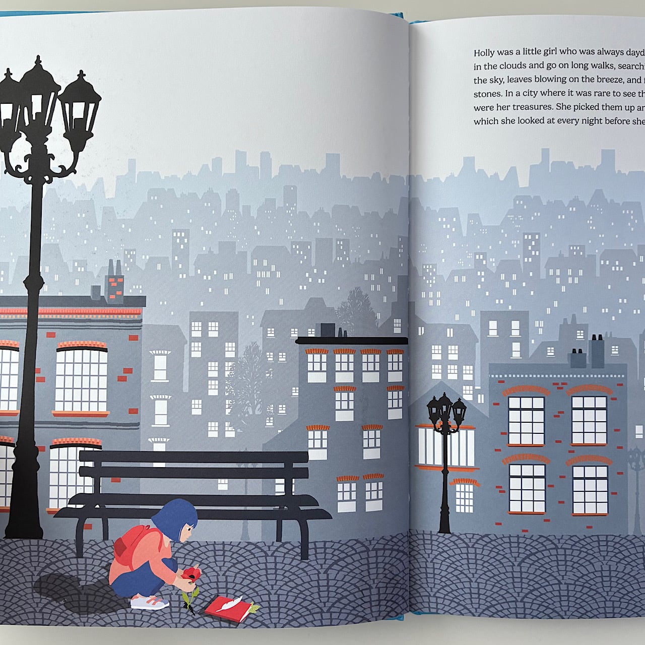 A delightful picture book with intricate lasercuts and beautiful illustrations. Holly loves to wander the city streets, collecting fallen leaves and stray flowers, tiny treasures that bring a spot of brightness to her life. But one day she stumbles upon the biggest treasure of all, an amazing forgotten place bursting with life and colour that might change her grey world forever...