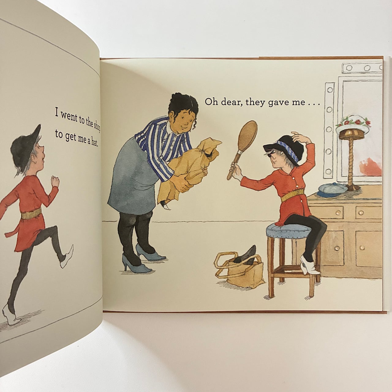 "As a hapless boy goes from shop to shop, requesting a series of perfectly reasonable items--a hat, a coat, a cake, a chair--he finds himself thwarted at every turn, amassing instead a growing menagerie of animals who happily follow him on his errands. It's not until he finally asks for a cup that he's proffered a wriggly creature that solves his dilemma--or does it?"--