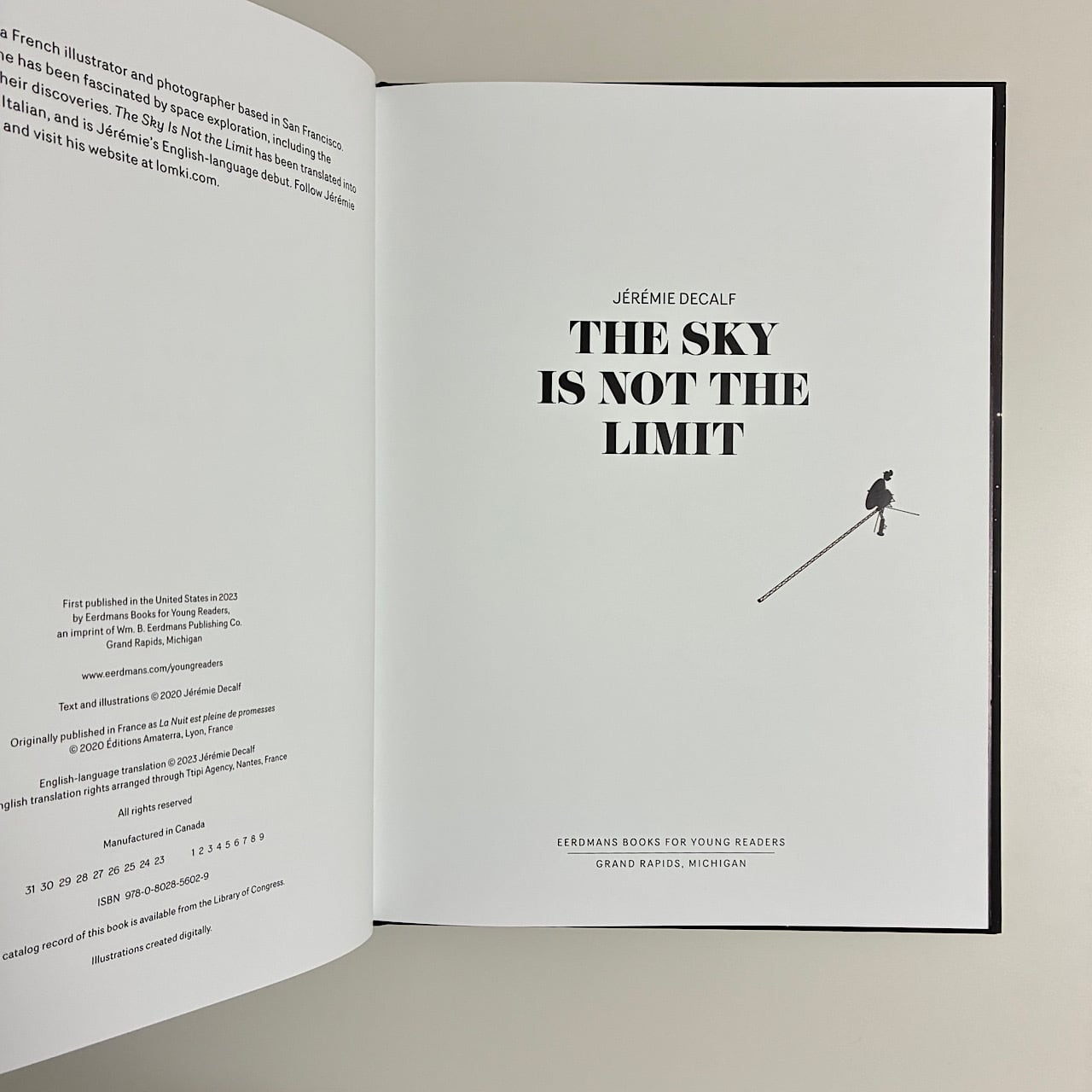 "A poetic odyssey through space with the groundbreaking Voyager 2 probe-past Earth, into deep space and beyond. In 1977, a space probe was built to help human beings learn a little more about outer space. Soon, along with its twin, Voyager 2 slipped through the clouds and left Earth behind. The spacecraft traveled for years through the deep, infinite night. At last Voyager 2 reached its first goal: Jupiter. Then it met the spellbinding sight of Saturn. Then, going further than any previous mission, the probe visited the blue ice giants Uranus and Neptune. Past the boundaries of our solar system, Voyager 2 sails on, carrying a Golden Record for any new friends it makes in interstellar space...This lyrical, atmospheric book introduces young readers to a pioneering NASA spacecraft that has spent over forty-five years observing and exploring our galaxy. With stirring poetry, luminous art, and fascinating back matter, The Sky Is Not the Limit will inspire future scientific innovators and foster a sense of wonder at our universe"--
