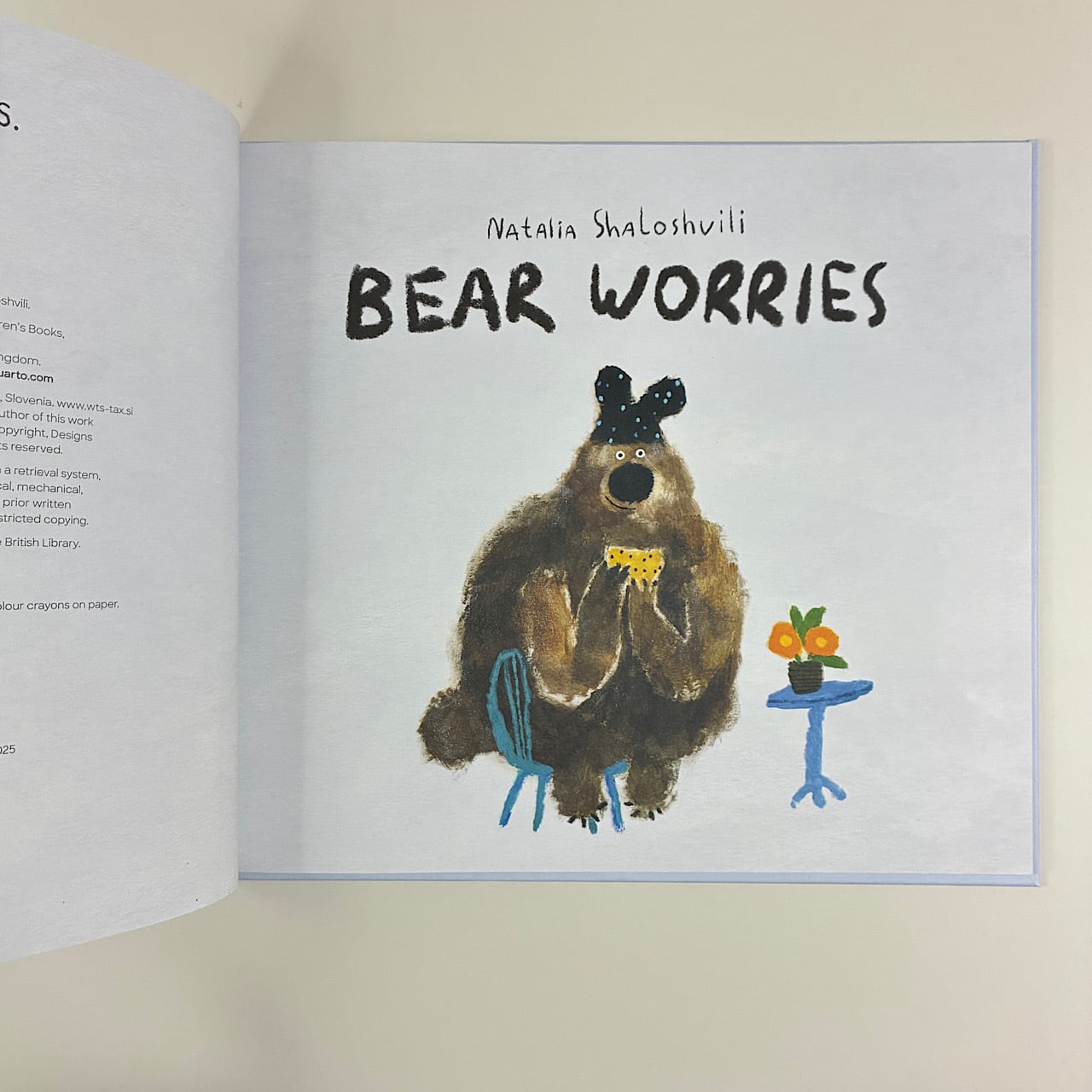 to Duck! But just when Bear thinks his worst fears have been realised, Duck gently shows him that worries don’t have to end in disaster. By sharing his cookie and reminding Bear that ‘what ifs’ can lead to happy endings too, Duck helps his friend see that things often turn out better than expected. Complete with Natalia Shaloshvili’s expressive, playful illustrations and a story that balances humour with warmth, Bear Worries captures the familiar experience of children (and adults) whose imaginations run away with them. Both entertaining and reassuring, this picture book is the perfect springboard for conversations about anxiety, resilience and friendship. Whether shared at storytime, used in classrooms or given as a thoughtful gift, Bear Worries is an essential addition to every child’s bookshelf.