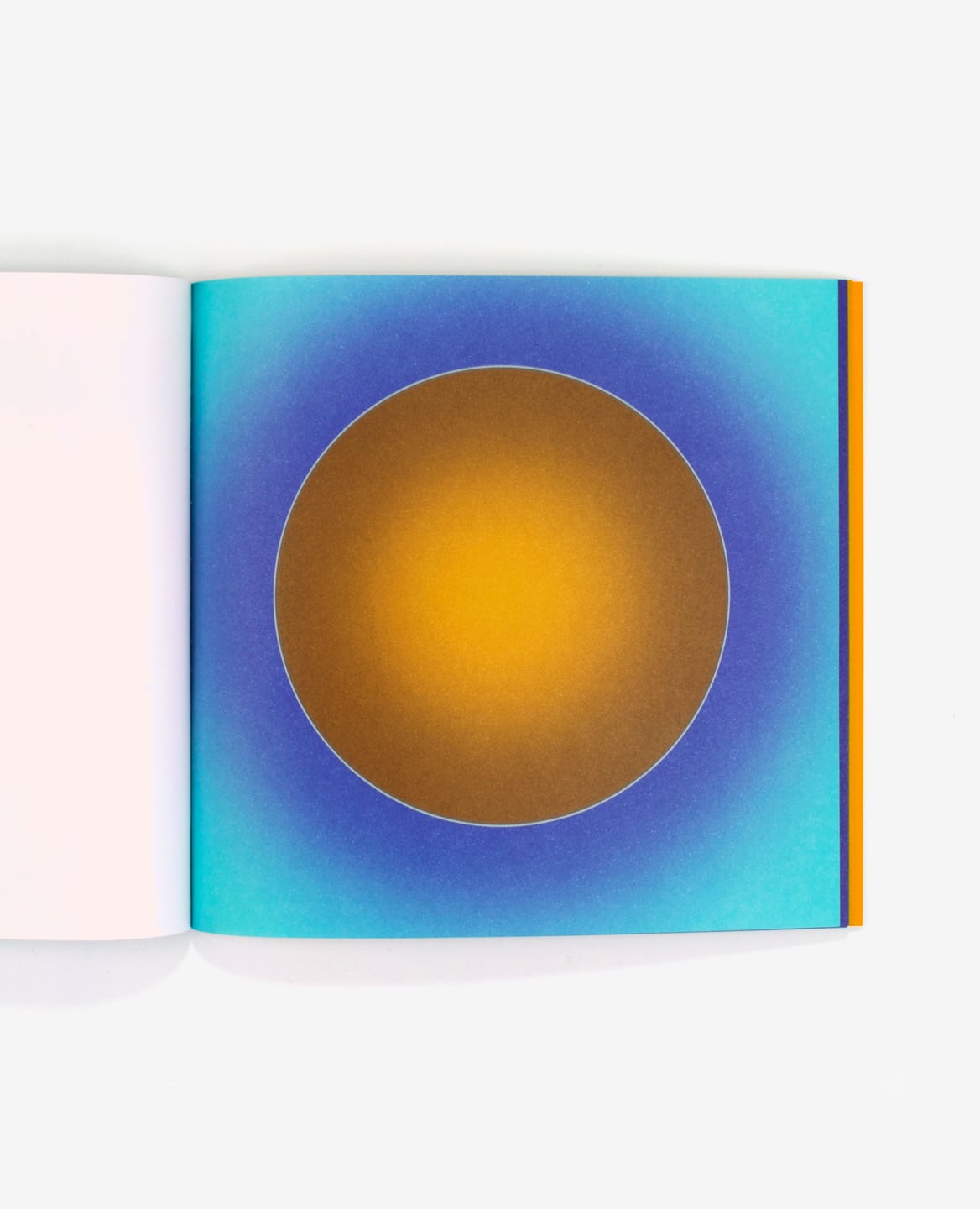 各ページにシンプルな円(太陽)を配置し、時間経過とともにその色・輝き・ハロー(光輪)が変化していきます。6色の特色インクを駆使して、光の放射を「色の拡張」として捉えています。