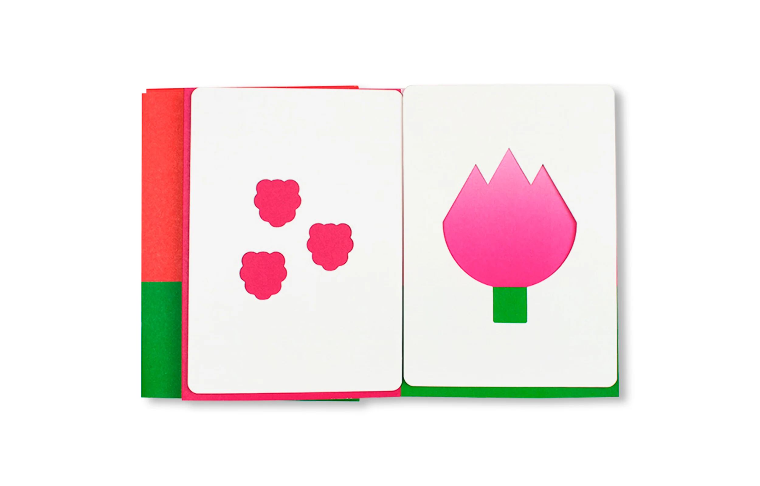 カードを自由に配置・移動・重ねて、想像力で庭園を育てたり、変な色合いの野菜を作ったりできます。まるで「市場で買った野菜を並べ替えてアートを作る」感覚になります。展開すると本が長く伸びるので、テーブルに広げて複数人で遊べるのも魅力です。
