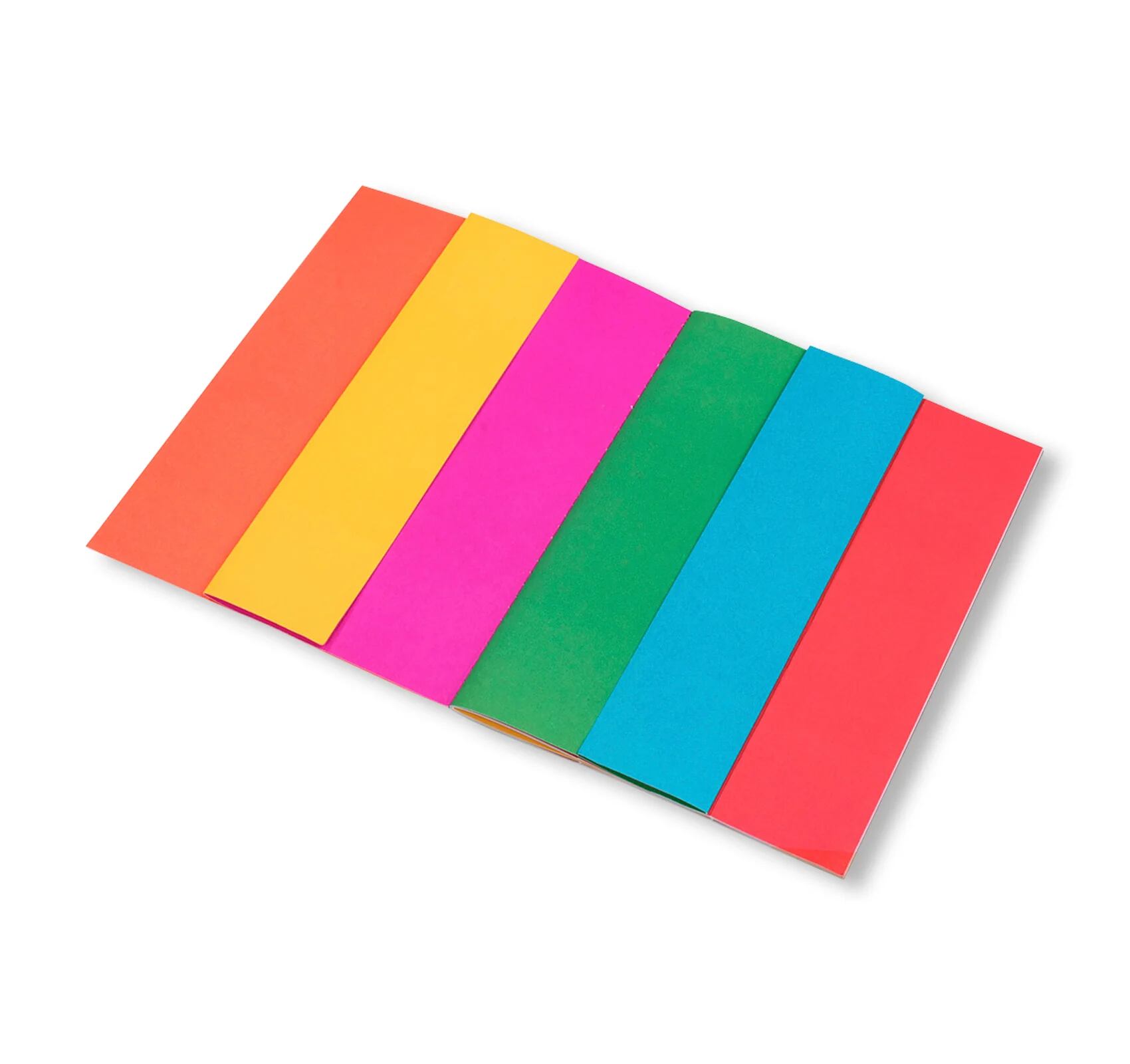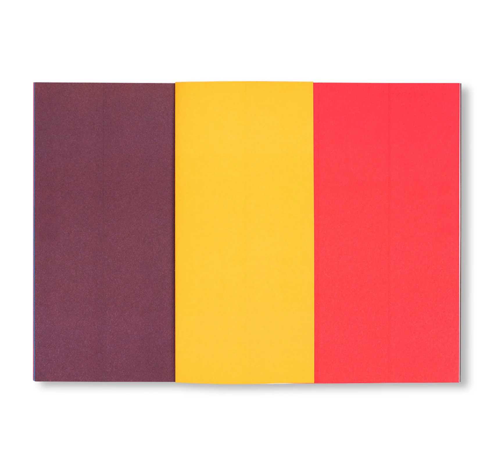 各ページは一見すると単色のベタ刷りですが、縦方向に2本の折り目が入れられており、ページを3つのストリップ(帯状の部分)に分けて自由に折り曲げ・組み合わせることができます。