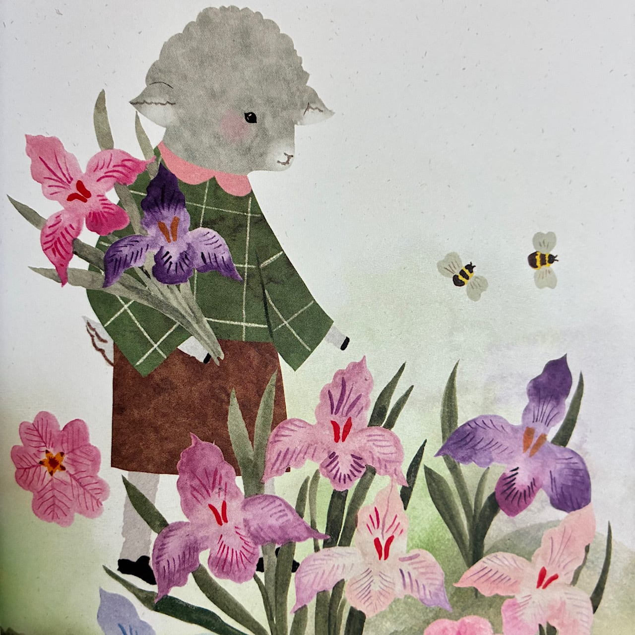 愛らしい子羊は、友だちのためにたくさんの花を選んでいきます。