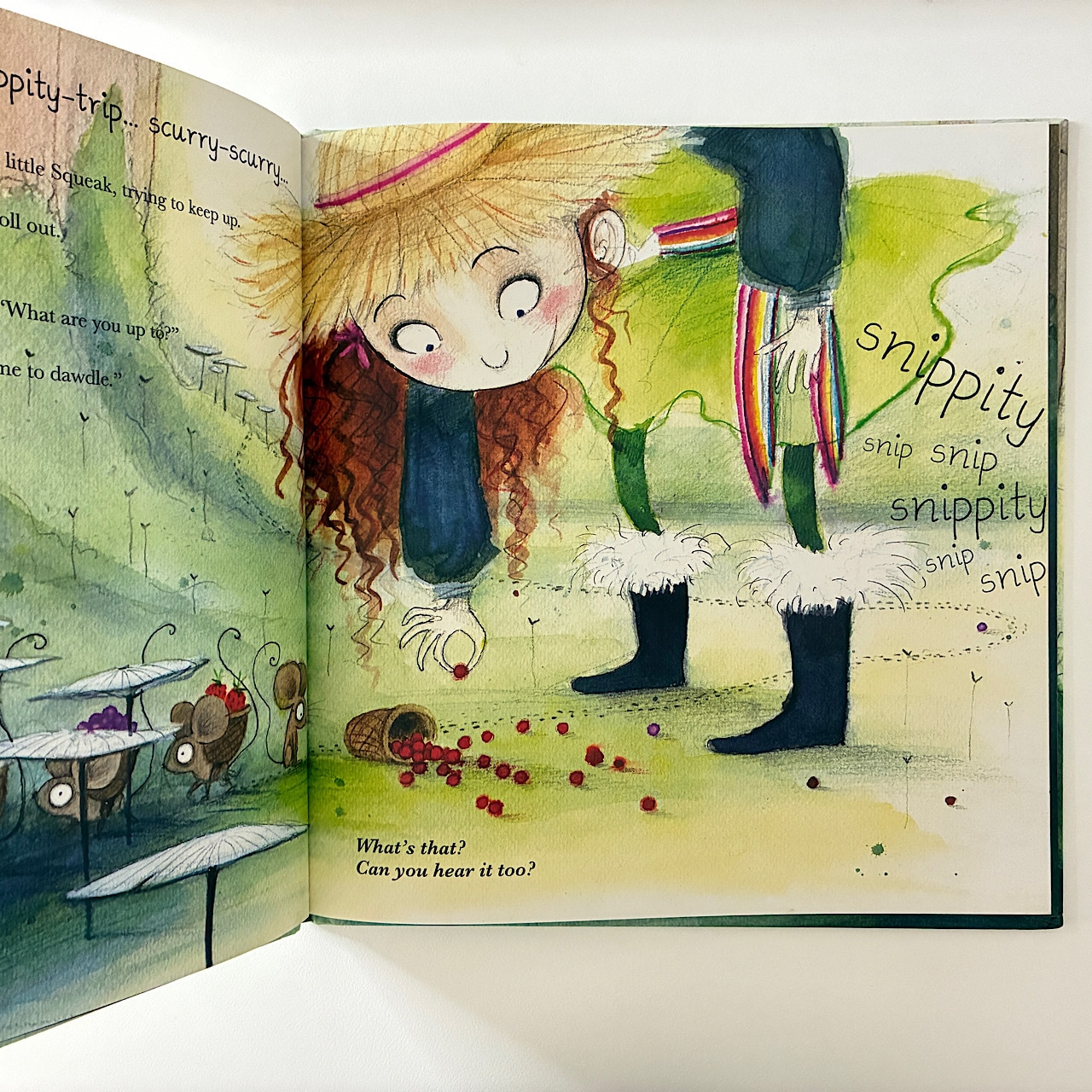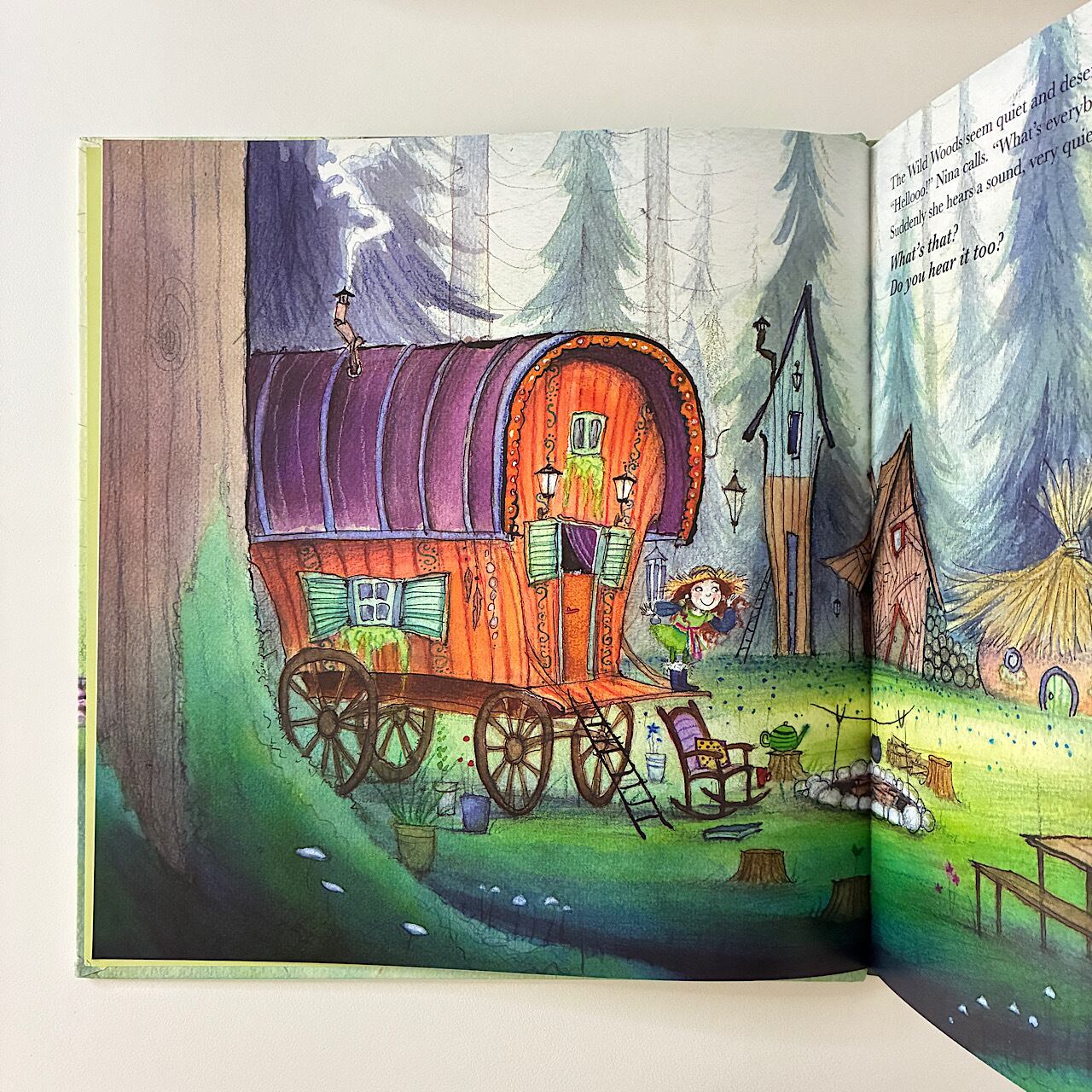 There’s something strange going on today – the woods seem awfully quiet. And why doesn’t anyone seem to have time for her? Not Aunt Dora. Not the three woodsy woodsmen, Nick, Rick and Vick.