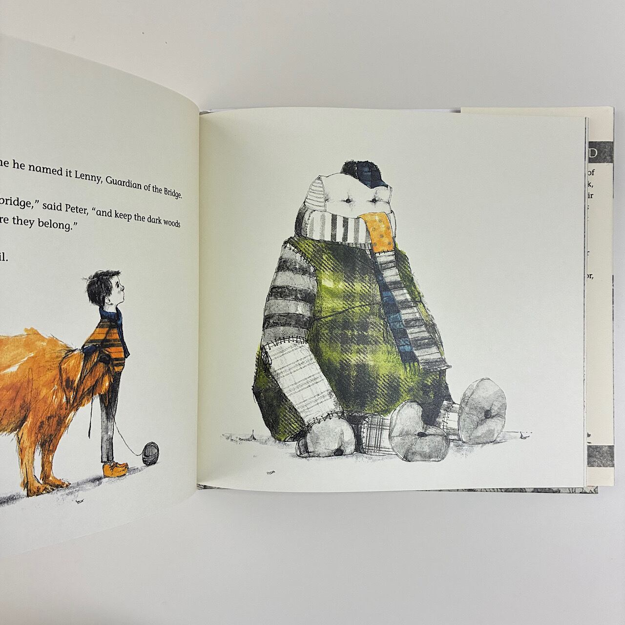 「レニーは橋を守り、向こう側の暗い森をもとの場所に留めておくんだ」とピーターは言いました。