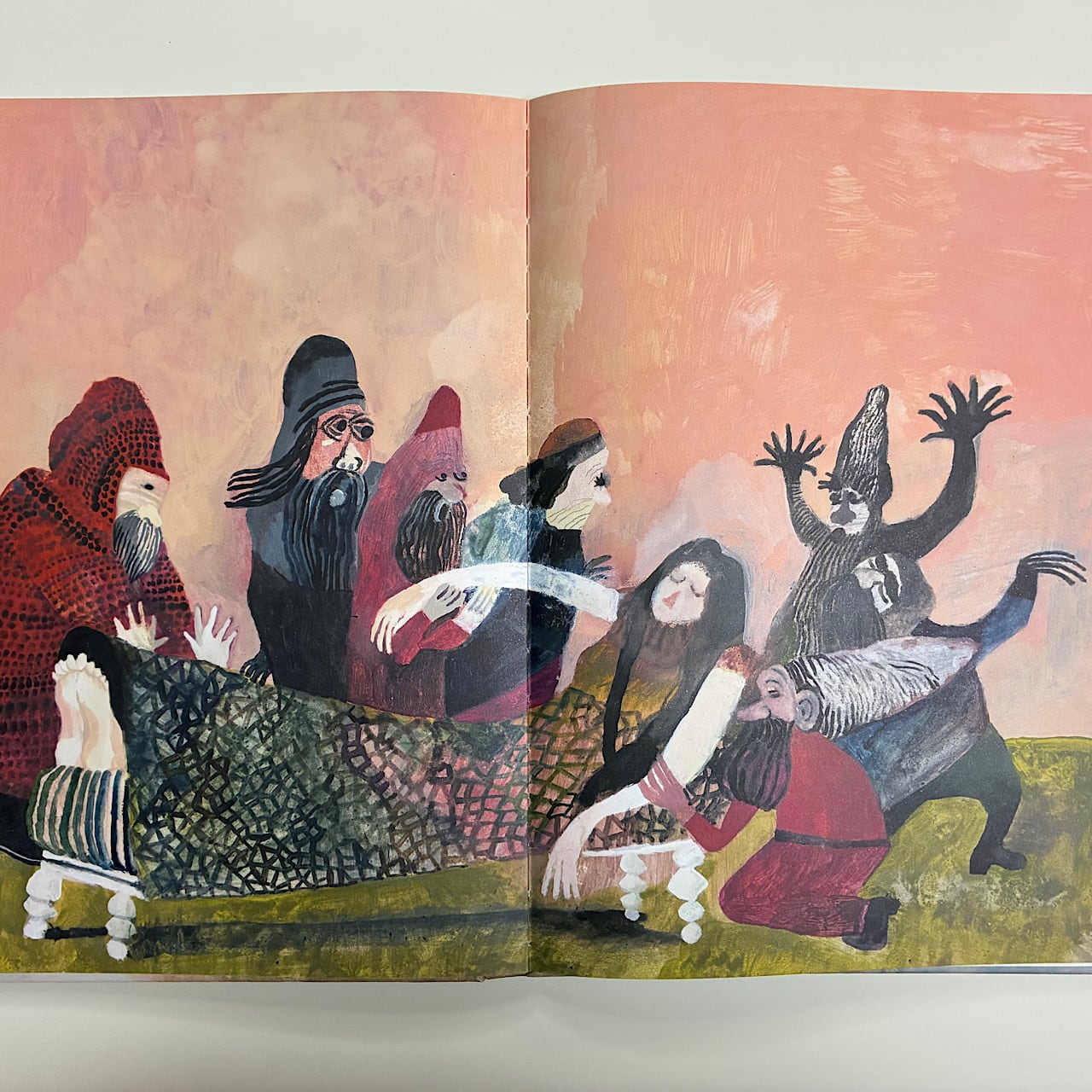 詩的な語りで紡がれた物語が書かれ、その後に印象的なシーンが文字のないイラストのみで続きます。それが交互に続くことにより、女王の苦悩が少しづつ読み手の心に刻み込まれていきます。