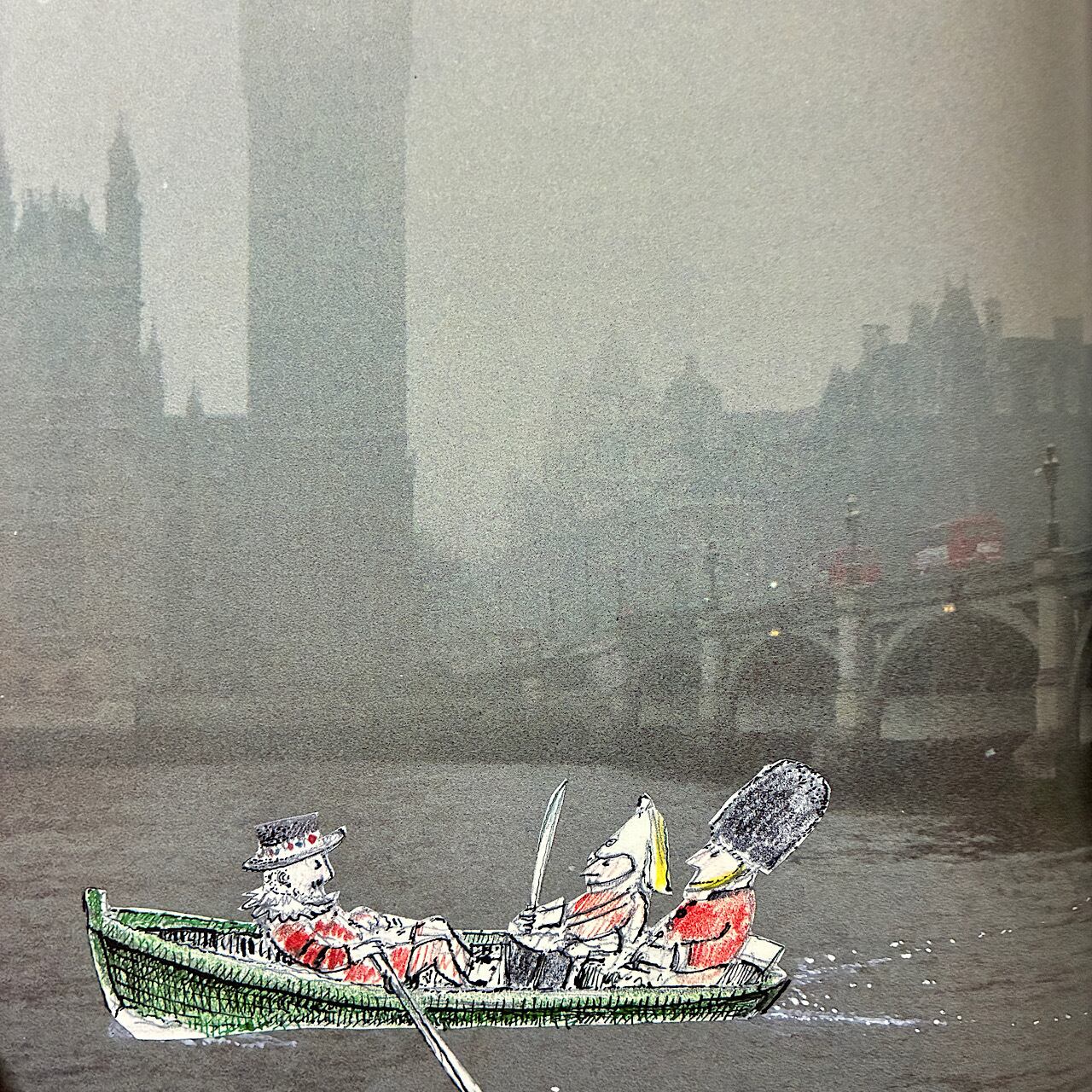 イングランドの伝統(クリケット、モリスダンス、紅茶文化)と現代の問題(交通渋滞、フォックスハンティング、核エネルギー)を、カラフルなイラストとモノクロスケッチで表現しています。詩や新聞の切り抜きなど断片的なテキストを交え、伝統と現代の対比や社会批判を浮き彫りにします。例えば、クラフトドッグショーと捨て犬施設の対比は鋭いメッセージ性を示します。