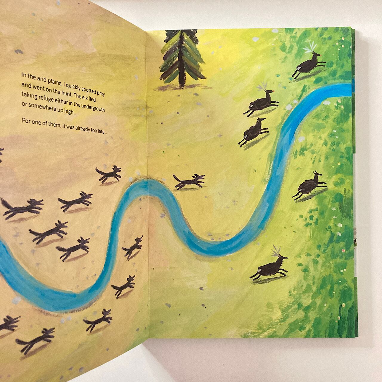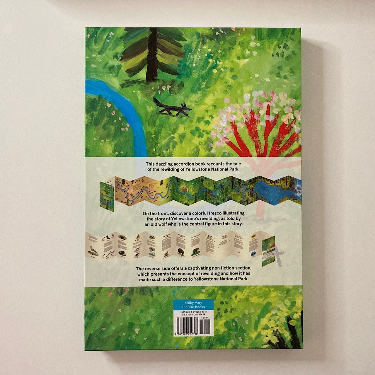 この絵本は、現在は広大で美しいイエローストーン国立公園の再生を描いています。