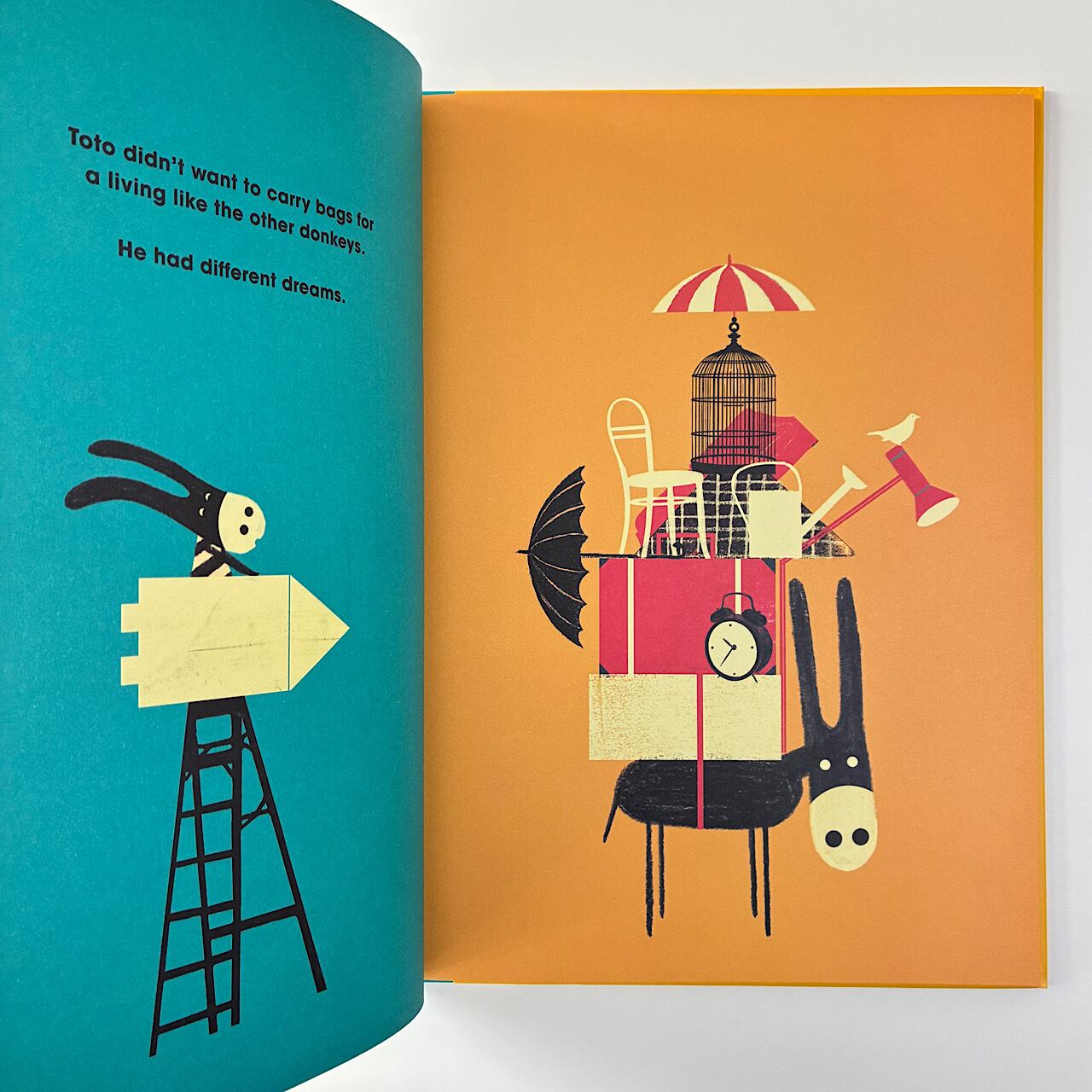 ロバのトトは、ほかのロバのように荷物運びの仕事をしたくはありませんでした。