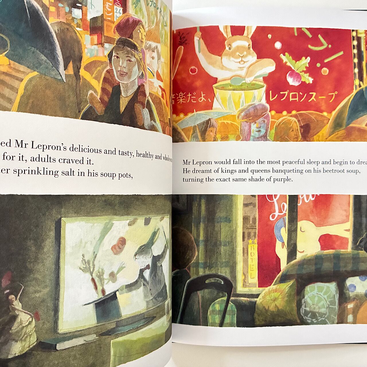 Mr Lepron also enjoys napping and he always dreams of being a famous chef, cooking his magnificent soup. After his vivid, fantastical dreams, Mr Lepron's soup tastes out-of-this-world irresistible. So irresistible, that Mr Lepron becomes famous.