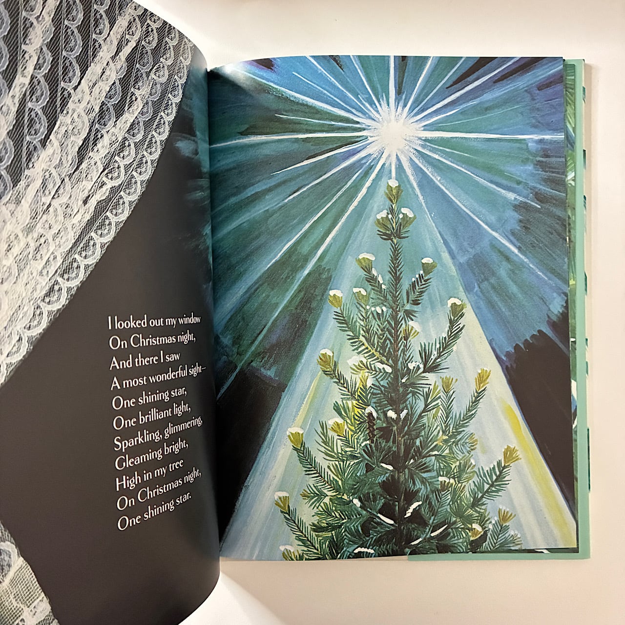 ひとつの輝く星、ひとつのまばゆい光、きらめき、きらめき、明るく輝いていました。 クリスマスの夜、私の木の高いところに、ひとつの輝く星がありました。